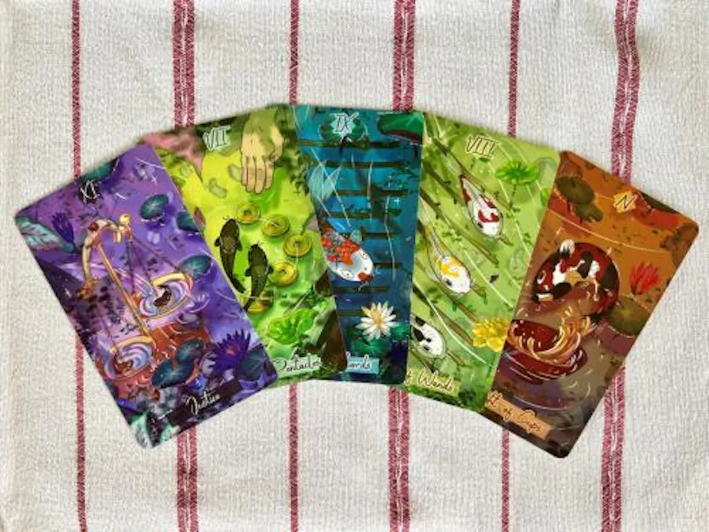 Avez-vous parfois envie d'un moment calme de fluidité et de clarté au milieu du rythme effréné de la vie quotidienne ? Le Nishikigoi Tarot est un jeu de tarot indépendant fantaisiste qui invite l'énergie douce et résiliente des poissons koi japonais dans votre espace sacré.